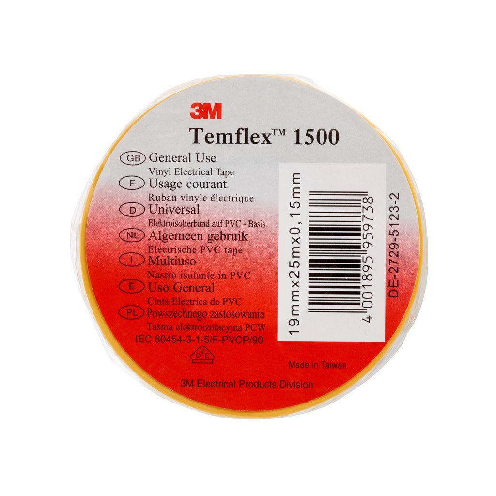 Il nastro elettrico in vinile 3M™ Temflex™ 1500 può essere usato per riparazioni, cablaggi e isolamento primario di fili e cavi (basso voltaggio). Questo nastro professionale offre alte prestazioni ed è adatto per l'uso in ambienti interni ed esterni.