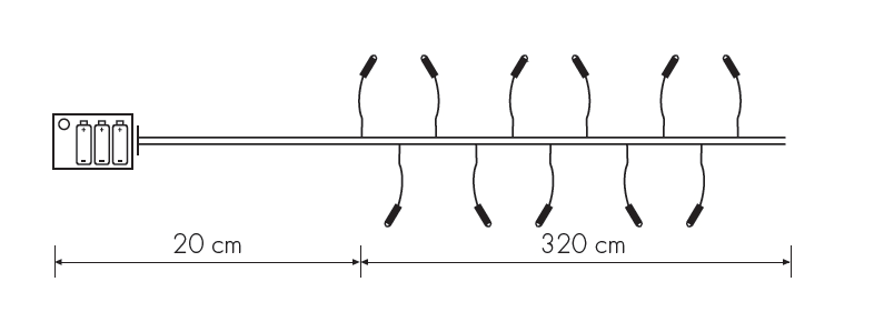 Ghirlanda lineare con 48 led ad alta luminosità, funzionamento a batterie, per uso all’interno. Ideale per la decorazione di centri tavola, piccoli alberi di Natale, presepi e tutti quei luoghi ove non è disponibile la rete elettrica nelle vicinanze, e dove è necessario non produrre surriscaldamento ( i led non producono calore). Gioco luci con 8 diverse combinazioni, completo di portapile. Cavo trasparente UL26AWG.Funziona con 3 batterie stilo (AA) - non comprese. I led consentono bassissimi consumi equindi lungo periodo d’esercizio. Inoltre il gioco luci è dotato di un timer che automaticamente spegne la ghirlanda dopo 6 ore dall’ultima accensione ed altrettanto automaticamente la riaccende dopo 18 ore. Utilizzando batterie nuove vengono così garantiti sino a 15 cicli (con luce accesa fissa) o 30 cicli con luce lampeggiante. N. led: 48. Led Ø 3mm, 3V-20mA-0,06W. Consumo: 3W