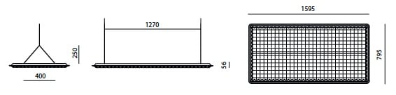 Eggboard Matrix - 1600x800 - (senza luce) - Grigio. Modulo cieco. Apparecchio a sospensione con proprietà di assorbimento acustico grazie al particolare disegno a sezione sinusoidale della superficie inferiore e all’utilizzo di materiale fonoassorbente. Efficacia acustica garantita in uno spazio definito dal posizionamento a un metro circa sopra la testa di chi parla e ascolta. Emissione diretta: un board con elevato numero di LED a bassa potenza con riflettori rotosimmetrici garantisce il massimo comfort luminoso. Temperatura di colore 3000K o 4000K. Conforme alle norme previste per le attività di ufficio con presenza di video terminali.