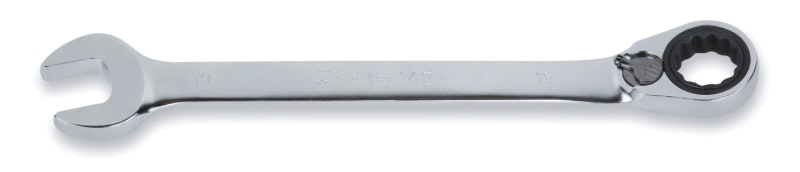 La chiave a cricchetto Beta 142 e ideale per effettuare serraggi veloci e precisi. Il meccanismo a cricchetto, a 72 denti con angolo di ripresa di soli 5?, consente di avvitare e svitare con facilita e rapidita. La levetta di reversibilita permette di agire in un verso o nell'altro con grande agilita. Caratteristiche: ? Poligono piegato di 15? per una buona presa anche quando lo spazio di manovra e limitato ? La testa a bocca fissa e inclinata di 15? rispetto all'asse per ridurre l'angolo di ripresa ? Cricchetto a 72 denti con angolo di ripresa di 5? per serraggi veloci ? Levetta di reversibilita integrata ? Acciaio legato ad alte prestazioni per una maggiore resistenza meccanica alle torsioni e una lunga durata nel tempo ? Trattamenti termici dedicati per un'ottima resistenza all'usura ? Finitura cromata satinata ? Conforme alla norma di riferimento ISO 21982 - ISO 1711