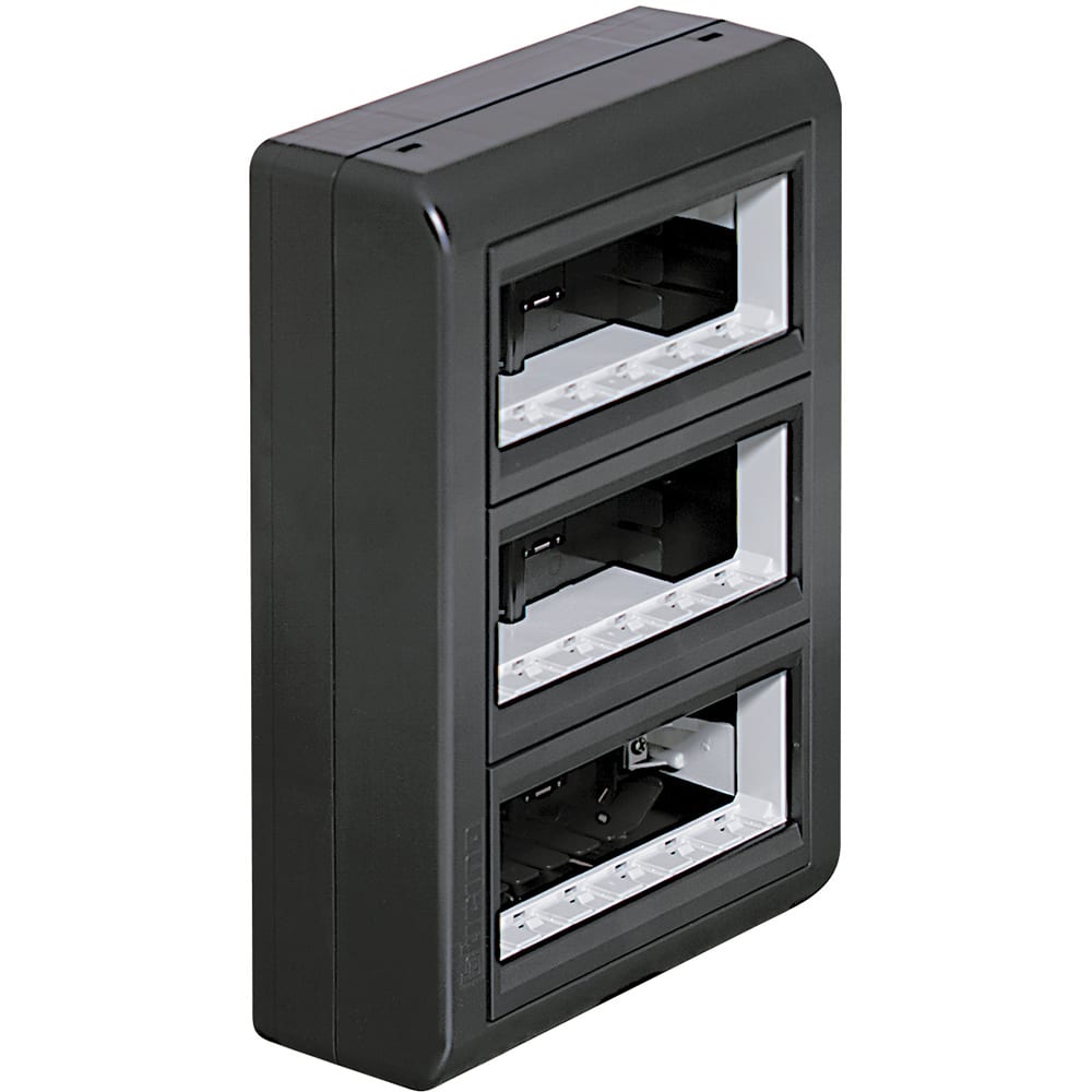 centralino multifunzione da parete, con telaio, supporti e placche per 18 moduli (3 scomparti da 6)