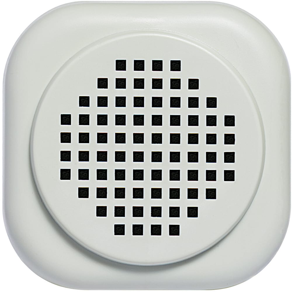 Suoneria supplementare in estetica neutra. Consente la ripetizione della chiamata citofonica in più ambienti. Installazione da parete o su scatola tonda (con graffette di fissaggio).
