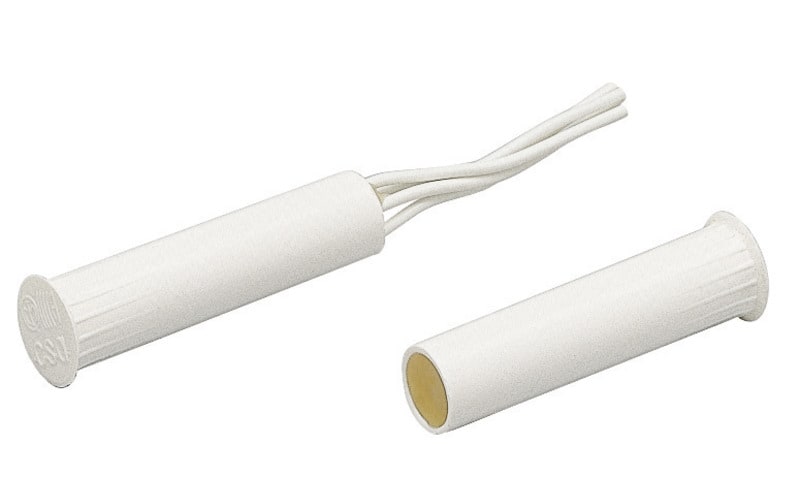Sensore magnetico con contatto NC e linea di protezione - esecuzione per installazione da incasso. Utilizzabile anche con il nuovo Antifurto filare-radio.