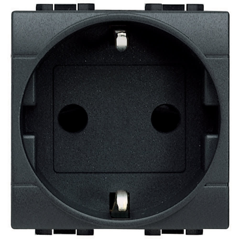presa 2P+T 16A 250 Vac con contatti laterali di terra - standard tedesco - alveoli schermati - Antracite