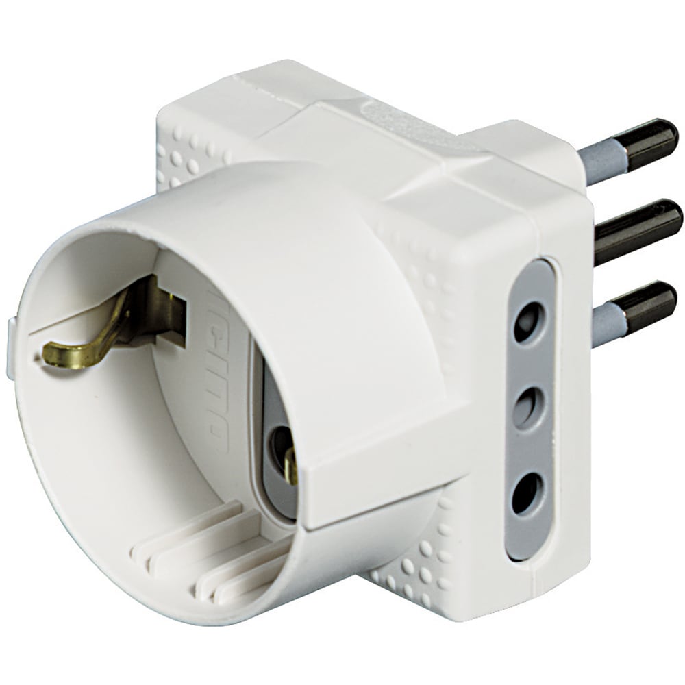 Adattatore TRIS con 1 presa tedesca 2 prese 10A di colore bianco