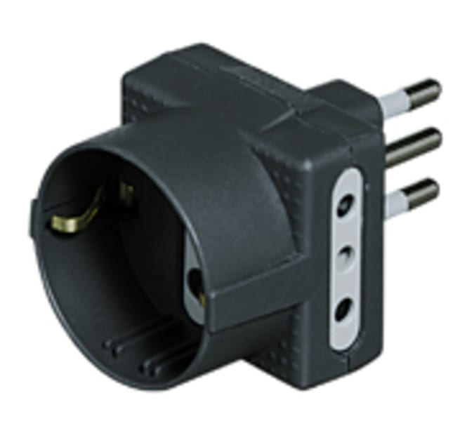 Adattatore TRIS con 1 presa tedesca 2 prese 10A di colore antracite