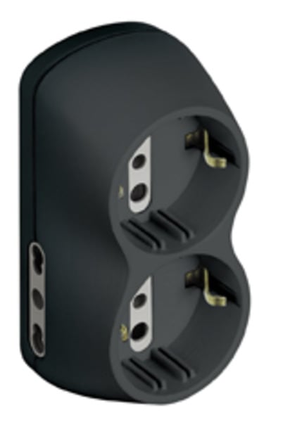 Adattatore B4 con 2 prese bipasso 10/16A e 2 prese tedesche, spina 16A di colore antracite - appendibile