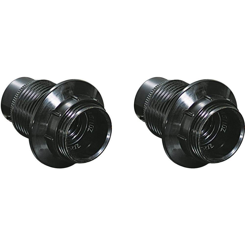 confezione con coppia di portalampada in plastica con attacco mignon - volante con corpo filettato e ghiera di fissaggio - colore nero - prodotto in blister 72x122mm. Formato blister: blister 72x122