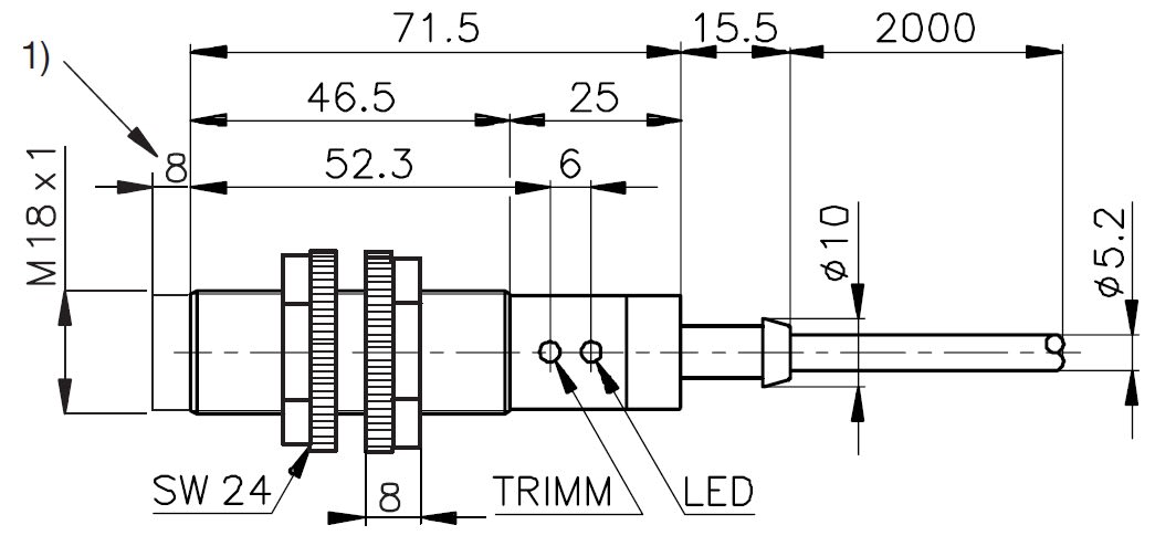 Sensore di prossimita capacitivo, marca MICRO SWITCHES S.R.L., modello GAVCA18CAF08PA - SENS. CAP. M18 TOT SCH PNP NO NC CAVO