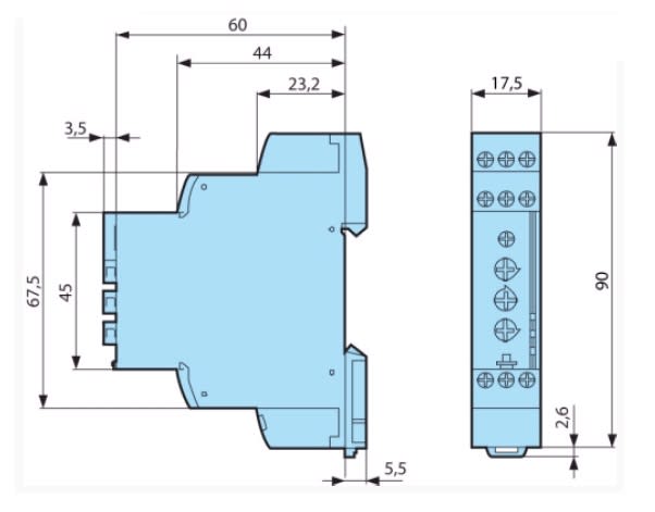 Temporizzatore modulare per montaggio su guida DIN con uscita a stato solido.