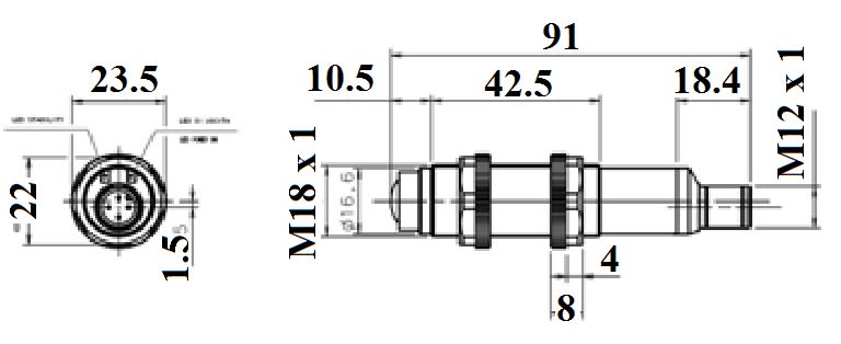 Fotocellule di sicurezza proittorericevitore, omologate e certificate per funzionare unicamente con le centraline di sicurezza serie SG-BWS formando con esse rispettivamente sistemi di Tipo 2 e Tipo 4 in conformità con EN 954-1 e EN ISO 13849-1. Fotocellule in formato tubolare M18 plastico con emissione infrarossa della serie S5 con distanza operativa di 8m.