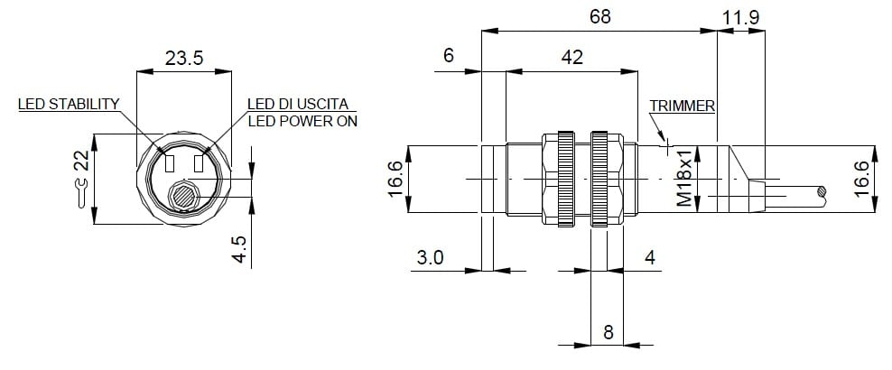 Diametro del sensore: