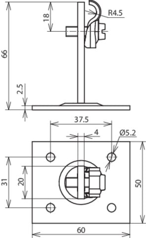 Staffa portafilo per tetti per la posa di captatori su tetti piani e pareti. Esecuzione Fe/tZn piccola, con staffa portafilo DEHNQUICK, posa fissa del conduttore, altezza fino al centro del conduttore 60 mm.