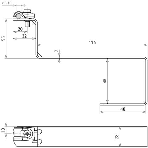 Staffa portafilo per tetti con montante angolato per il fissaggio di captatori e calate per tetti piani. Esecuzione per l'agganciamento alle tegole / pietre oppure sotto la copertura, con staffa portafilo DEHNQUICK, posa fissa longitudinale o trasversaledel conduttore.