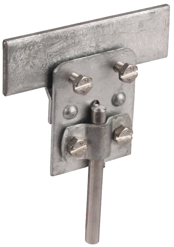 Morsetto scanalato secondo CEI EN 62561-1 per il collegamento di conduttori tondi con scanalature. Esecuzione con cavallotto di fissaggio a due viti, posa del conduttore longitudinale o trasversale.