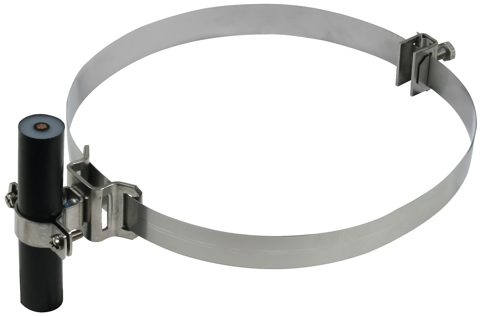 Staffa portafilo in acciaio INOX per la conduttura HVI power, per il fissaggio ad es. su tubi o su pali d'antenna.