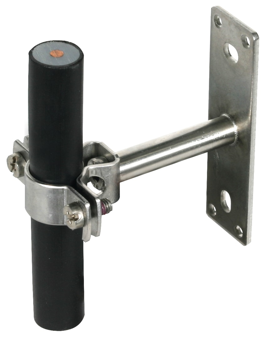 Staffa portafilo per la posa di condutture HVI in ambienti con pericolo di esplosione della zona Ex 1 (gas, vapori e miscele), e anche nella zona Ex 21 (polveri combustibili). Per le particolari condizioni d’installazione e` garantito che non si verifichi alcuna scintilla elettrica verso parti metalliche vicine durante il passaggio della corrente di fulmine nella conduttura HVI. Esecuzione con bussola distanziatrice di 70 mm, per il fissaggio su parti metalliche di costruzioni (ad es. facciate).