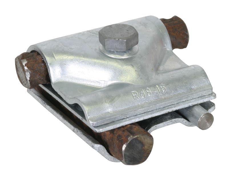 Morsetto di collegamento multiuso "maxi"secondo CEI EN 62561-1, per l'applicazione universale per connessioni a croce, a "T"e parallele, per la connessione di dispersori di profondità oppure ferri d'armatura; a tre componenti. Esecuzione a tre componenti con vite esagonale e filetto nella parte inferiore.