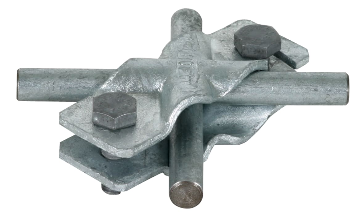 Morsetto SVP secondo CEI EN 62561-1, per collegamenti a croce ed in parallelo, parte superiore con asola aperta (non è necessario svitare completamente le viti). Esecuzione senza piastra intermedia.