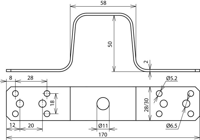 Cavallotto di ponticellamento secondo CEI EN 62561-1, per il collegamento e la connessione di rivestimenti metallici mediante rivetti oppure viti. Esecuzione corta con foro centrale.