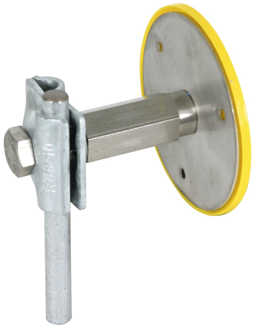 Punto fisso di terra secondo CEI EN 62561-1 come collegamento, resistente alla corrosione, di calate p.es. all'armatura dell'edificio o all'impianto di terra per l'equipotenzialità di sicurezza e / o l'equipotenzialità di funzione, per l'installazione nella cassaforma. Esecuzione Tipo M con morsetto MV e filetto di collegamento M10 / 12.