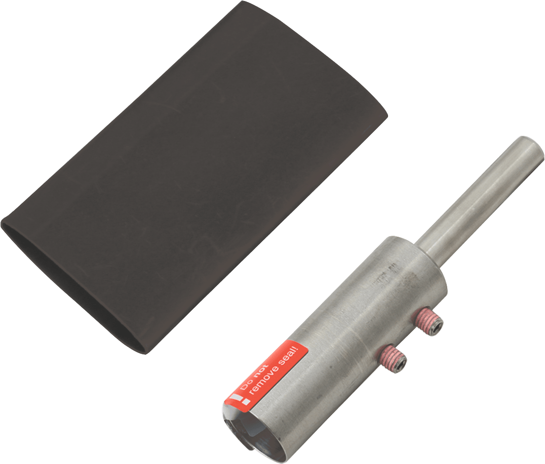 Elementi di connessione per attestare la conduttura HVI long, per la realizzazione della connessione della conduttura per altri componenti della protezione esterna da fulmini o dell'impianto di terra. Sono compresi nella confezione un tubo termorestringente e due fascette.