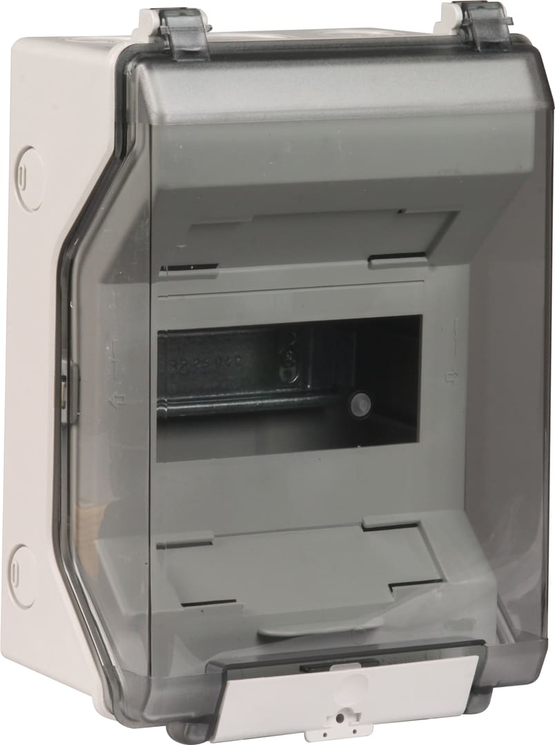 Custodia stagna provata con corrente di fulmine per il montaggio a vista, IP54, per il montaggio di apparecchi modulari con larghezza di max. 6 unità.