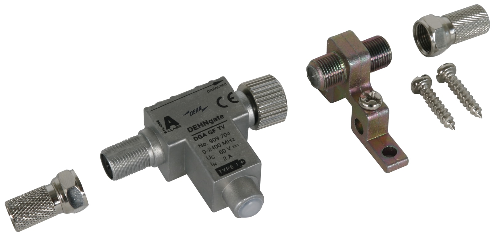 Adatti per alimentazioni remote con connettori "F"per impianti satellitari ed a banda larga a 75 Ohm. Gli scaricatori sono conformi alle richieste per la schermatura in classe A secondo EN 50 083-2. Adatti per l'installazione con risparmio di spazio nelle più comuni applicazioni TV e SAT. Con integrata presa per misure per le prove nell'impianto.
