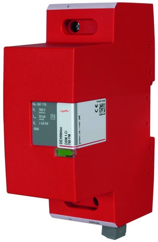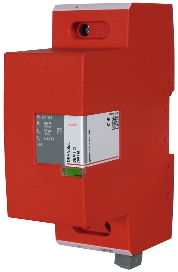 Scaricatore coordinato per corrente di fulmine unipolare DEHNbloc Maxi CI, Tipo 1 secondo EN 61643-11, spinterometrico con fusibile di protezione integrato. Elevata capacità di estinzione e limitazione di corrente susseguente tramite tecnologia RADAX-Flow. Per la protezione di impianti elettrici utilizzatori in bassa tensione da sovratensione anche in caso di scariche dirette di fulmine. Per l'impiego nel concetto di protezione da fulminazione a zone ai passaggi 0A – 1.