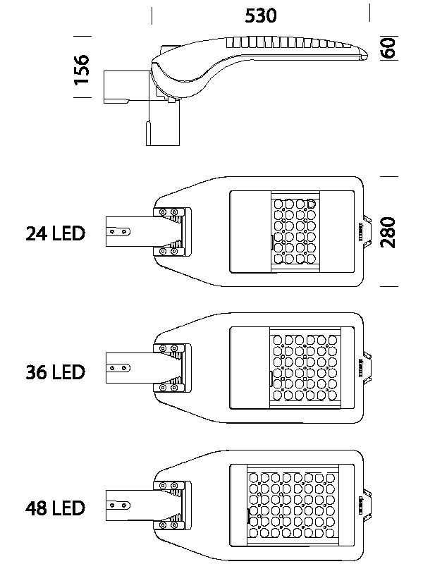 Corpo e telaio: In alluminio pressofuso e disegnati con una sezione e bassissima superficie di esposizione al vento. Alette di raffreddamento integrate nella copertura. Attacco palo: In alluminio pressofuso è provvisto di ganasce per il bloccaggio dell’armatura secondo diverse inclinazioni. Orientabile da 0° a 15° per applicazione a frusta; e da 0° a 10° per applicazione a testa palo. Passo di inclinazione 5° Idoneo per pali di diametro 63-60mm. Ottiche: Sistema a ottiche combinate realizzate in PMMA adalto rendimenti resistente alle alte temperature e ai raggi UV. Recuperatori di flusso in policarbonato V0 metallizzato. Diffusore: vetro trasparente sp. 4mm temperato resistente agli shock termici e agli urti (UNI-EN 12150-1 : 2001). Verniciatura: A polvere con resina a base poliestere, resistente alla corrosione e alle nebbie saline. Dotazione: Dispositivo automatico di controllo della temperatura. Nel caso di innalzamento imprevisto della temperatura del LED causata da particolari condizioni ambientalio ad un anomalo funzionamento del LED, il sistema abbassa il flusso luminoso per ridurre la temperatura di esercizio garantendo sempre il corretto funzionamento. Diodo di protezione contro i picchi di tensione. Equipaggiamento: Completo di connettore stagno IP67 per il collegamento alla linea. Dissipatore: Il sistema di dissipazione del calore è appositamente studiato e realizzato per permettere il funzionamento dei LED con temperature inferiori ai 50° (Tj = 25°) garantendo ottime prestazioni/ rendimentoed un’ elevata durata di vita. Led con lente per una migliore distribuzione luminosa. POWERLED 4000K - 530mA - 10224lm - 72W CRI>70. Tecnologia LED di ultima generazione Ta-30+40°C vita utile 60.000h al 70% L70B20.