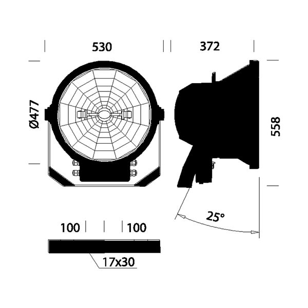 CORPO/TELAIO: In alluminio pressofuso, con alettature di raffreddamento. RIFLETTORE: In alluminio 99.98, ossidato anodicamente e brillantato DIFFUSORE: Vetro temperato sp. 5 mm resistente agli shock termici e agli urti (prove UNI EN 1250-1:2001). VERNICIATURA: a polvere poliestere colore grigio grafite resistente alla corrosione e alle nebbie saline. PORTALAMPADA: In ceramica e contatti argentati. Attacco a cavo. CABLAGGIO: Alimentazione 230V/50Hz. Cavetto flessibile capicordato con puntali in ottone stagnato, isolamento in silicone con calza in fibra di vetro, sezione 2.5 mm². Morsettiera 2P+T in nylon con massima sezione dei conduttori ammessa 6 mm². EQUIPAGGIAMENTO: Pressacavo in nylon f.v. diam. 1/2 pollice gas. Dispositivo di protezione: al momento dell'apertura (a cerniera) della parte posteriore il contatto da normalmente chiuso si apre interrompendo l'alimentazione. Con mirino per il puntamento. Valvola di ricircolo aria. Completo di accenditore posto nell'apposita cassetta in dotazione. NORMATIVA: Prodotti in conformità alle vigenti norme EN60598-1 CEI 34-21, sono protetti con il grado IP66IK08 secondo le EN 60529. Hanno ottenuto la certificazione di conformità Europea ENEC. Riaccensione a caldo: Accenditore elettronico con accensione intelligente con tecnologia a microprocessore. Riconoscimento automatico della lampada connessa con relativa regolazione della tensione di innesco. Accensione simmetrica con spegnimento automatico in caso di guasto o di fine vita della lampada per preservare i componenti dell’ apparecchio d’ illuminazione. MAX-TS 2000 SA-by wire.