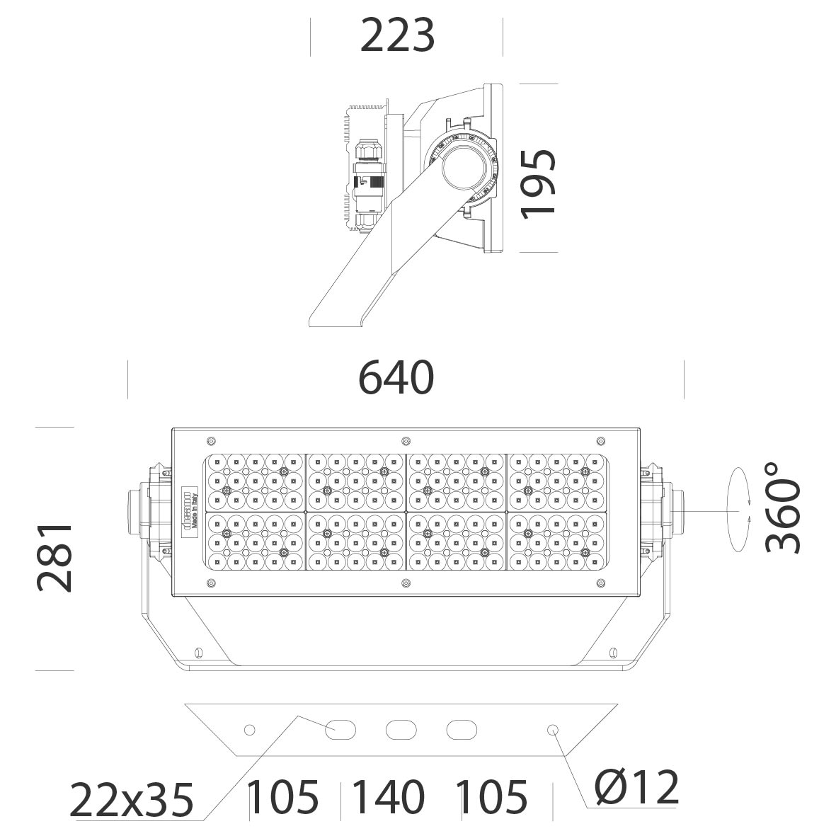 La gamma dei proiettori Forum di Disano, uno dei prodotti leader nell'illuminazione di grandi aree e di impianti sportivi di tutto il mondo, si arricchisce con il nuovo Forum LED. Nato dalla consolidata esperienza nel settore dei proiettori con lampada a scarica, Forum LED spicca grazie alla dotazione delle più affidabili e sofisticate tecnologie e all'impiego di sorgenti Led di ultimissima generazione. La forma del corpo illuminante permette di ottenere variegate combinazioni di potenza, di lumen e di fasci luminosi; sono disponibili, infatti, proiettori con moduli singoli, doppi o tripli, con distribuzione asimmetrica, a fascio stretto 8° oppure 17°, simmetrici da 30° a 120°. Il considerevole rendimento di questi proiettori ne agevola l'utilizzo nellegrandi aree così come negli impianti e centri sportivi indoor e outdoor, fornendo prestazioniineguagliabili in ogni contesto.457W. 44679 lm. 4000 K