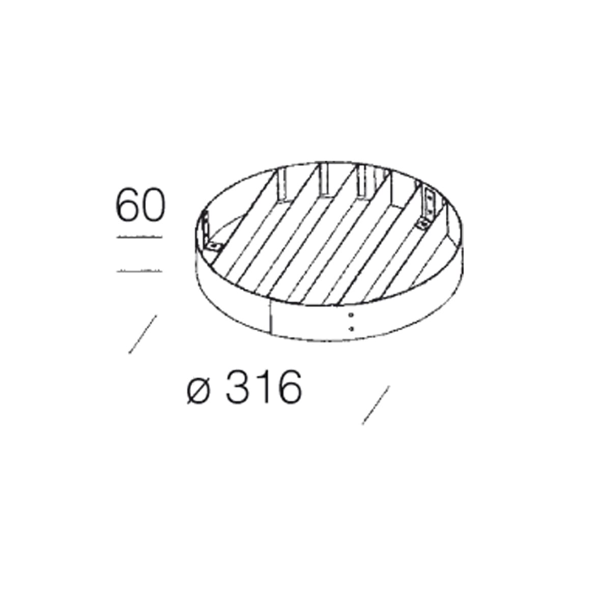 In acciaio verniciato per cataforesi epossidica. Permette di ridurre gli effetti dell'abbagliamento e consente di direzionare maggiormente il fascio luminoso.