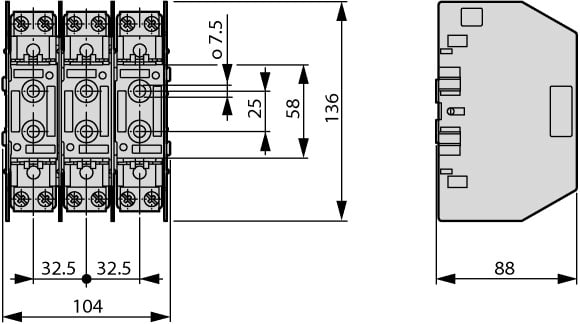 Base per fusibili NH, corrente nominale d'impiego 160A, cartuccia fusibile max.​ 160A/500V​ -​ 100A/690V, grandezza NH00