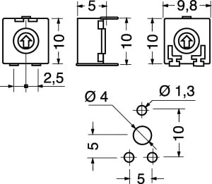 TRIMMER CERMET ACP 10x10 MONTAGGIO ORIZZONTALE REGOLAZIONE VERTICALE ROTORE CON TAGLIO PER CACCIAVITE. MAX POT. A 70°C:0,50 WMAX TENS.:200 VCC. ANG. ROTAZ.:240° ± 5 °. TOLLERANZA:± 20%. TEMP. LAV.:-55°C÷+125°C. COEF. TEMP.:±100 ppm/°C. CURVA:lineare. PASSO:5x10 mm. CE9PV10-100KA2020.