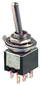 DEVIATORE SUBMINIATURA 2 SCAMBI 2 POSIZIONI STANDARD. PORTATA:3 A - 125 V. CORPO:materiale fenolico. LEVA:ottone nichelato. TERMINALI:a saldare. DADO RICAMB.:4/15204. CAPPUCCI PVC:4/6560.