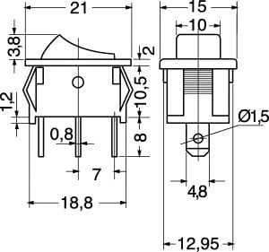DEVIATORI UNIPOLARI MINIATURA. PORTATA:6 A - 250 VCA. CORPO:nylon rinf. vetro. CONTAT.:ottone nichelato. TERMIN.:faston passo 4,80. FISSAGGIO:autobloccante. PER FASTON:4/11525. COPRIFASTON:4/11560. Col.Tasto: Nero.