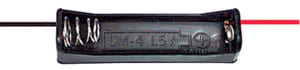 PORTAPILE PER 1 PILA MINISTILO (AAA-UM4). CORPO:polipropilene. CONNESSIONE:fili liberi. LUNG. FILI:150 mm. PER BATTER.NI-MH:30/284. PILE ALCALINE:30/24000 - 30/25000.