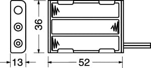 PORTAPILE PER 3 PILE MINISTILO (AAA-UM4). CORPO:polipropilene. CONNESSIONE:fili liberi. LUNG. FILI:150 mm. PER BATTER.NI-MH:30/284. PILE ALCALINE:30/24000 - 30/25000.
