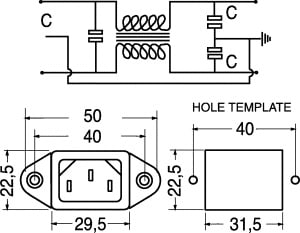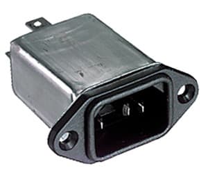 SPINA TRIPOLARE CON FILTRO RETE EMI/EMC. PORTATA:6 A - 250 V. CORRENTE Dl FUGA:5 µA. PROFONDITÀ:51,7 mm. CORPO:bachelite. CONTATTI:ottone nichelato. TERMINALI:faston 6,35.