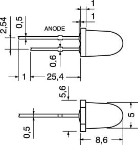 LED SUPERLUMINOSI TRASPARENTI Ø 5 mm. MAX. POT. DISSIP.:100 mW. TEMP. LAV.:-40°C÷+80°C. PER PORTALED:4/8146 - 4/8170. Intens.Lum.: 10000 MCD. Colore: Bianco.