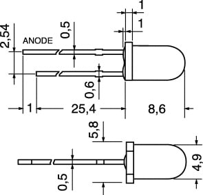 LED EMETTITORE ALL'INFRAROSSO Ø 5 mm. CONTENITORE:plastico. ANGOLAZIONE:30°. TENS. A 100 mA:1,35 (1,7) V. TENS. A 100 mA:1,35 (1,7) VTENS. INVERSA:4 V. ASSORBIMENTO:130 mA. TEMPO D'INTERV.:1µs. INTENSITÀ:15 (10) mW/SR. POT. DISSIPATA:210 mW. TEMP. LAV.:-55°C÷+100°C. Impiegato su telecomandi per TVC.. FUNZ. CON FOTOD.: 19/6020. PORTALED:4/8146-4/8170LD 271.