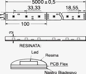 STRISCE A LED PARZIALIZZABILI 7,2W/m IP65. Striscia flessibile adesiva parzializzabile IP65 con led SMD 5050 utilizzabile in innumerevoli applicazioni come segnaletica; simboli; illuminazione decorative; ecc. Fornita in bobina lunga 5 mt che contiene 150led SMD separabili ogni 3 led (10cm). TENS. ALIM.: 12VCC. TEMP. LAV.: -45° + 80° C. ANGOLO ILL.: 120°. ALIMENTATORE: serie 13/23440;13/23460*. = Alimentatore per 1 bobina intera. Flusso Lum.Mt: 74lm.
