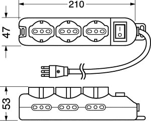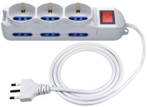 Presa multipla a 9 posti con interruttore. Dotata di interruttore luminoso. Con terra; base e coperchio in materiale termoplastico antiurto. Prese con alveoli di sicurezza schermati. Con possibilità di fissaggio. • Portata: 16A - 250V • Potenza max: 2500W