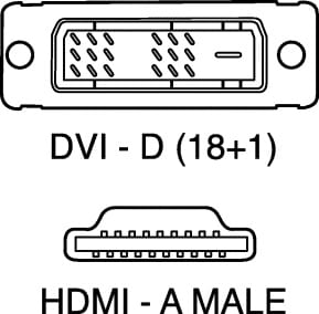 CAVO HDMI-A / DVI-D. CONNETTORI:SPINA HDMI TIPO “A”. SPINA DVI TIPO D 18+1FINITURA:NICHELATA. TIPO CAVO:AWG 28. COLORE GUAINA:NERO. Lungh.: 2,0m.