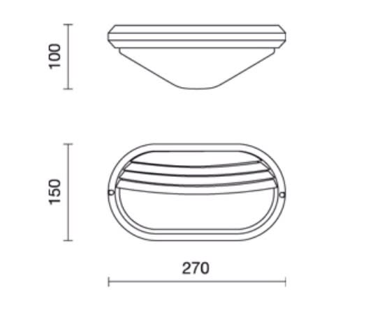 Tipologia di prodotto : Applique. Tipologie di montaggio : A parete. Descrizione : Plafoniera per esterni ideale per applicazioni in ambientiresidenziali e condominiali, sia per interni che per esterni.. Descrizione della lampada : HE 40W E27, FBT 11W E27 600Lm.. Numero di lampade : 1. Corpo : Termoplastico ad alta resistenza F.V. 30%. Diffusore : Policarbonato. Orientamento : Fisso. Distribuzione della luce : Asimmetrica. Emissione : Diretta. Colore: grigio.