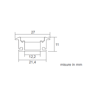 Profilo in estrusione di alluminio per l'installazione ad incasso in muratura. Disponibile nelle finiture di colore alluminio anodizzato per Proline 2711. IP20. Classe III. Lunghezza: 2000mm.
