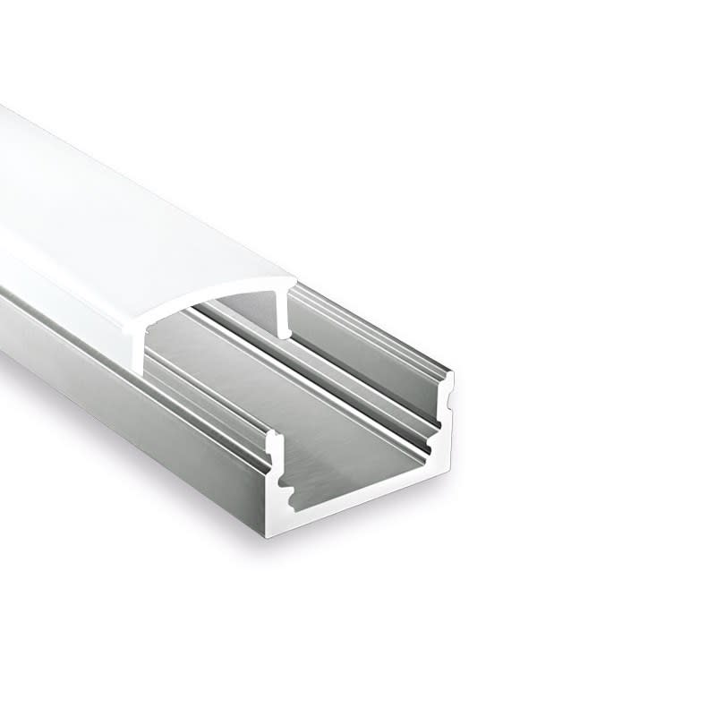 Profili in lega di alluminio estruso, anodizzato, cover semi-trasparente, ideali per l'installazione di strip led. 4 ganci di fissaggio e 4 tappi di chiusura (2 + 2), sono forniti con il profilo. Lunghezza(mm) : 2000. Larghezza(mm) : 17.2. Altezza(mm) : 9.2.