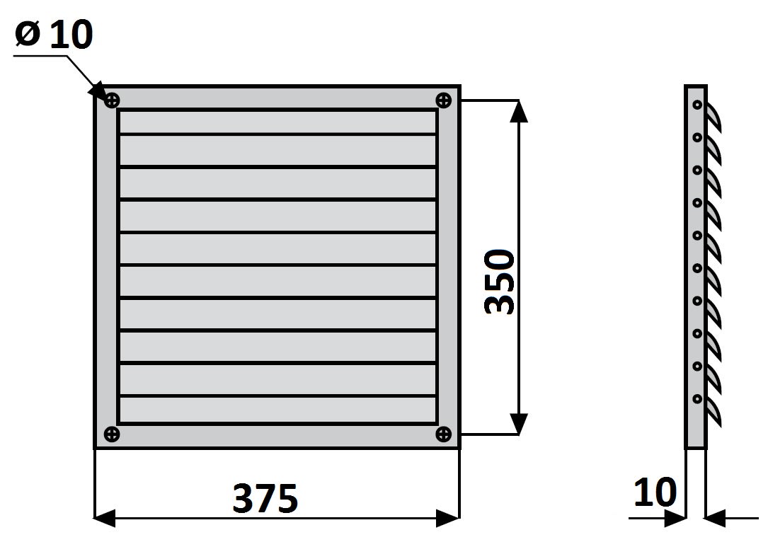 • Montata all’esterno, si apre ad apparecchio acceso e si richiude per gravità ad apparecchio spento • Evita l’ingresso di vento, pioggia o volatili • Telaio in acciaio verniciato con polveri epossidiche • Alette in PVC rigido.