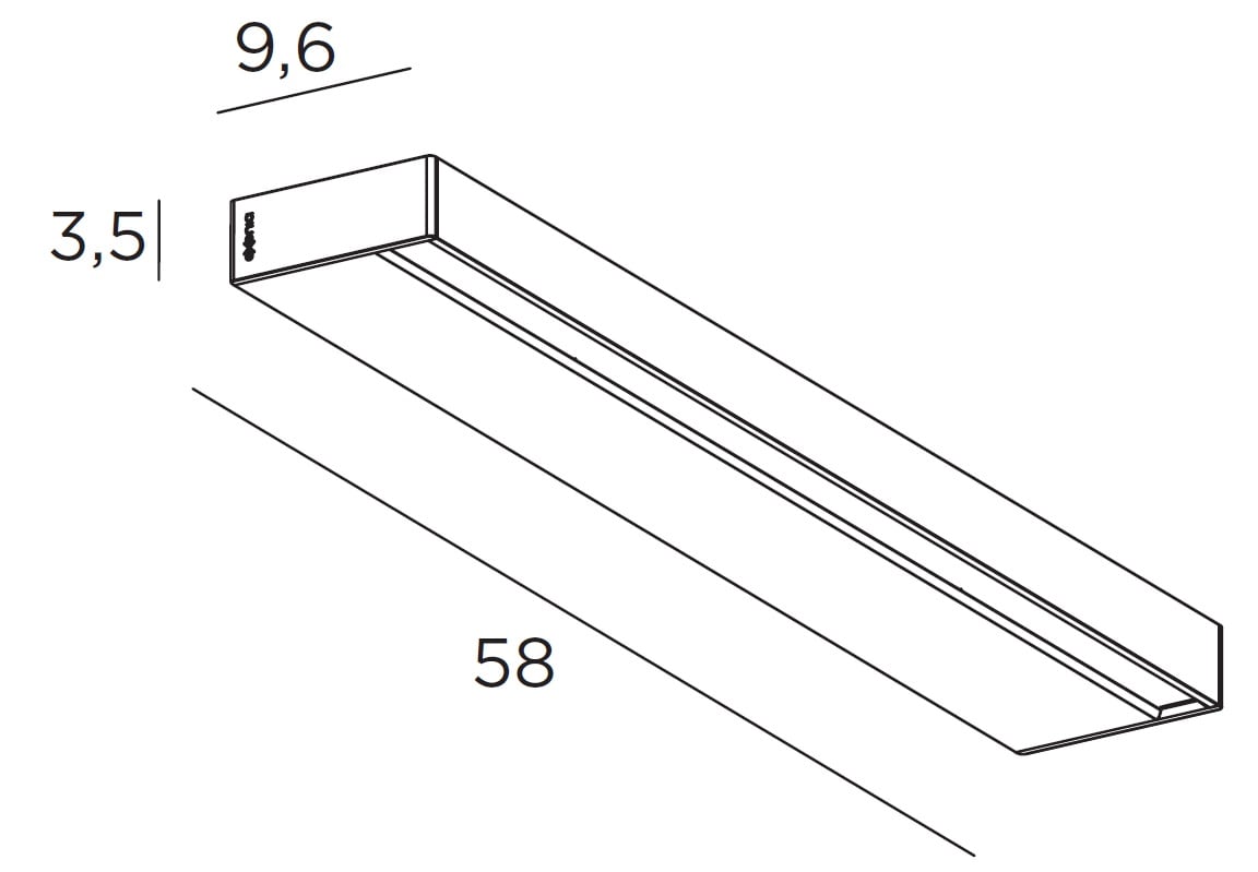 Apparecchio a parete con sorgente luminosa a LED per emissione diretta/indiretta. La particolare lente posizionata sulla sorgente LED permette un migliore emissione e rendimento del fascio luminoso. Corpo in alluminio estruso verniciato bianco opaco. Grado di protezione IP44. Sorgente Luminosa: LED 28W 3500Lm 3000K.